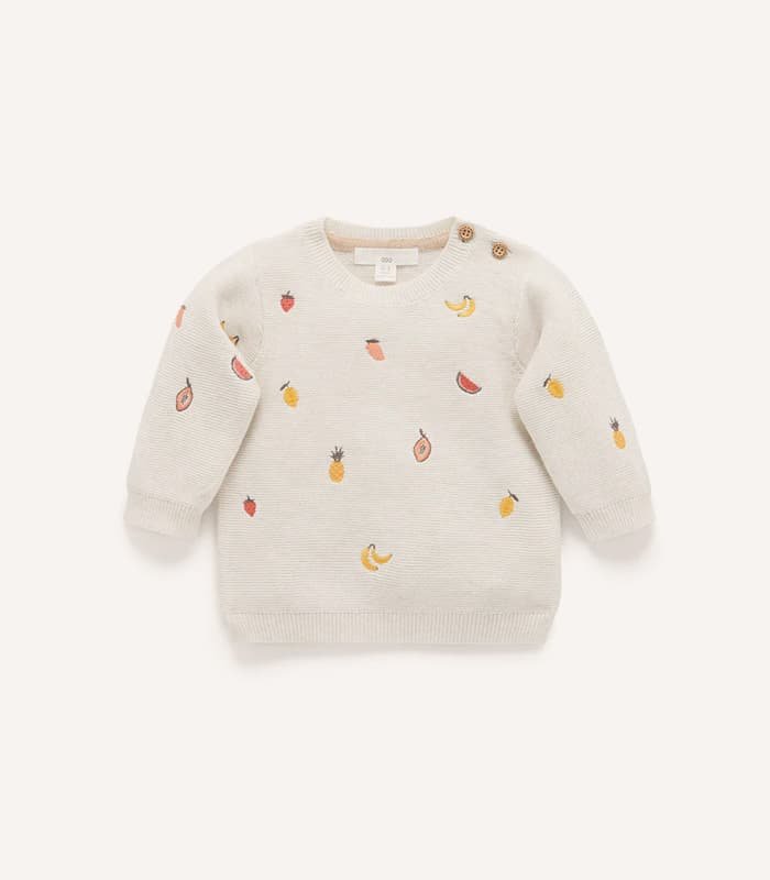 Keep warm and cosy in our Snowy Embroidered Jumper. Featuring an all over winter inspired embroidery with ribbed trims to keep out chills. Made from our organic cotton wool blend, pair this jumper with track pants or leggings for a sweet outfit.