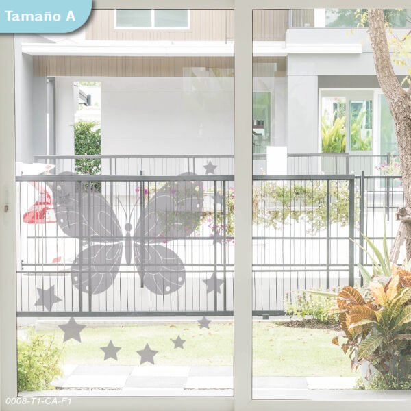 Sticker de pared con mariposa y estrellas, tamaño 73×54 cm, 1 unidad, ideal para habitaciones infantiles.