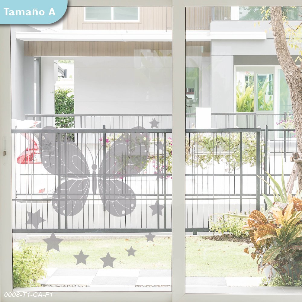 Sticker para vidrio con diseño de mariposa y estrellas, tamaño A, 1 unidad, ideal para ventanas y puertas de cristal.